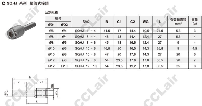 氣立可(chelic),SQHJ4-4,SQHJ8-4,SQHJ8-6,SQHJ10-6,SQHJ10-8,SQHJ12-8,SQHJ12-10,插管式接頭