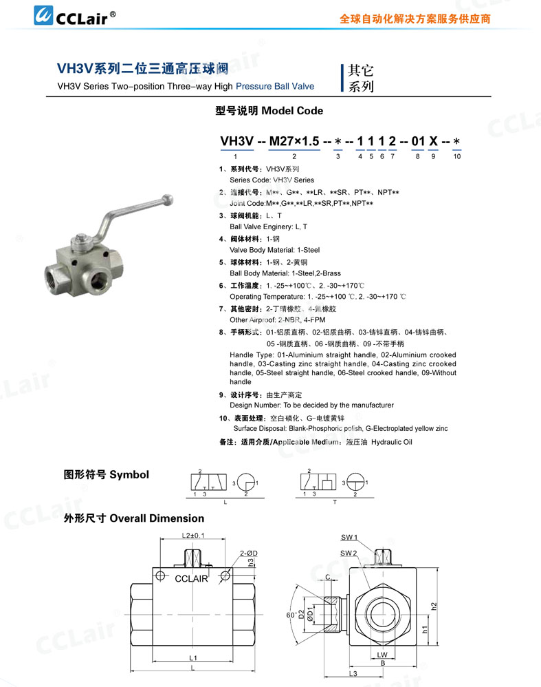 詳細(xì)信息 VH3V-NPT1/4,VH3V-NPT3/8,VH3V-NPT1/2,VH3V-NPT3/4,VH3V-NPT1,二位三通高壓球閥