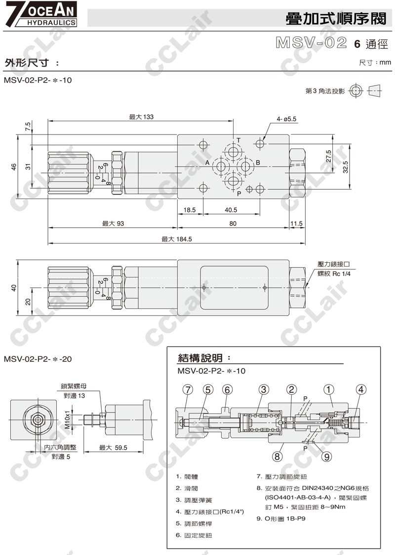 MSV-02,MSV-02-P2-1-10,MSV-02-P2-3-10,MSV-02-P2-1-20,MSV-02-P2-3-20,7OCEAN七洋疊加式壓力順序閥