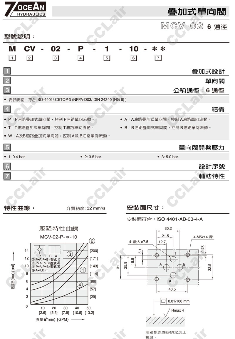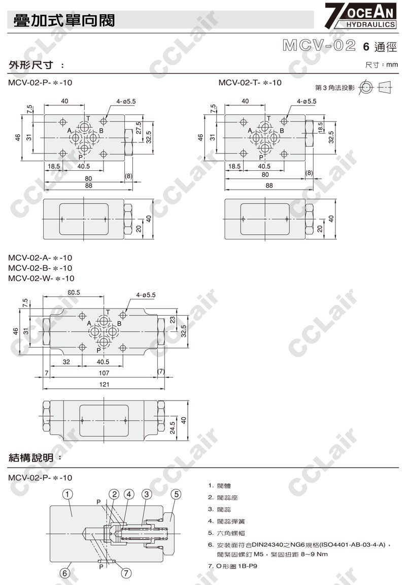 MCV-02-P,MCV-02-T,MCV-02-W,MCV-02-A,MCV-02-B,MCV-02-T-3-10,MCV-02-B-0-10,7OCEAN七洋疊加式單向閥 |