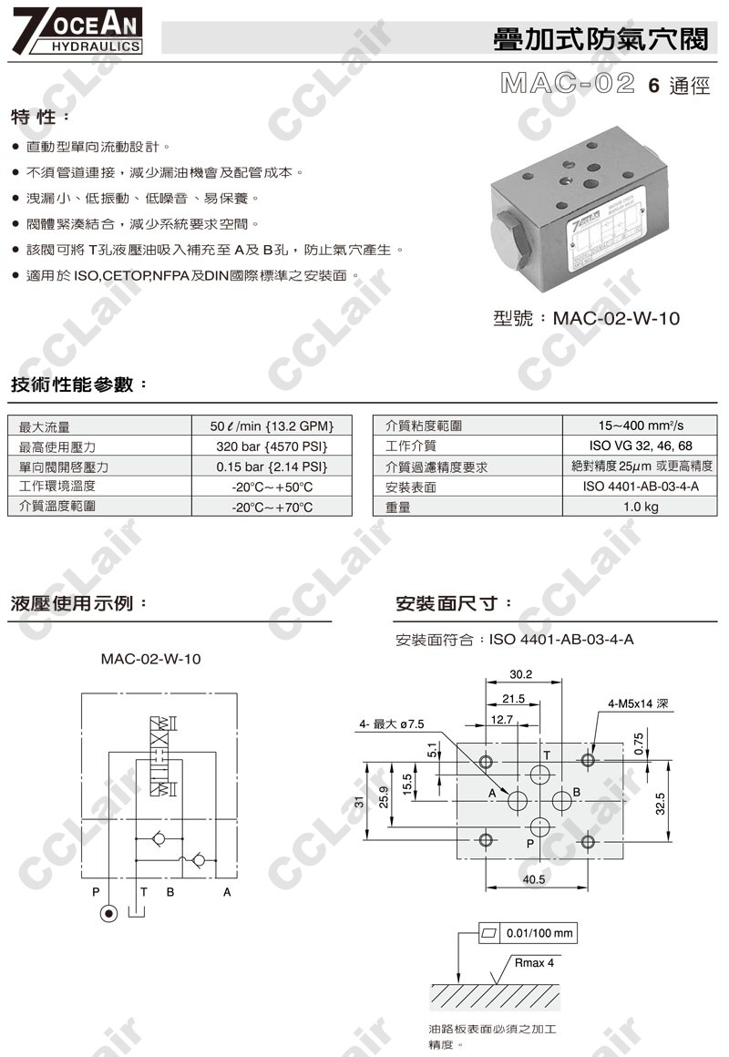 » MAC-02-W-10,7OCEAN七洋疊加式防氣穴閥
