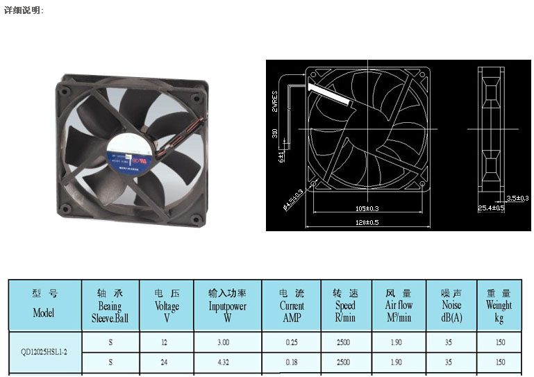 詳細(xì)信息 QD12025HSL1-2,直流風(fēng)機(jī)