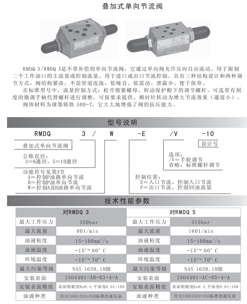 RMDQ3/W-E/V-10,RMDQ3/A-E/V-10,RMDQ3/B-F/V-10,RMDQ5/W-F/V-10,單向節(jié)流閥