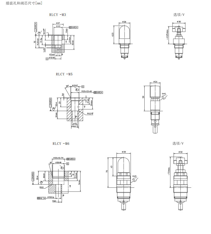RLCY-M3/50,RLCY-M5/100,RLCY-M6/210,RLCY-M3/210/V,RLCY-M5/250/V,插裝溢流閥