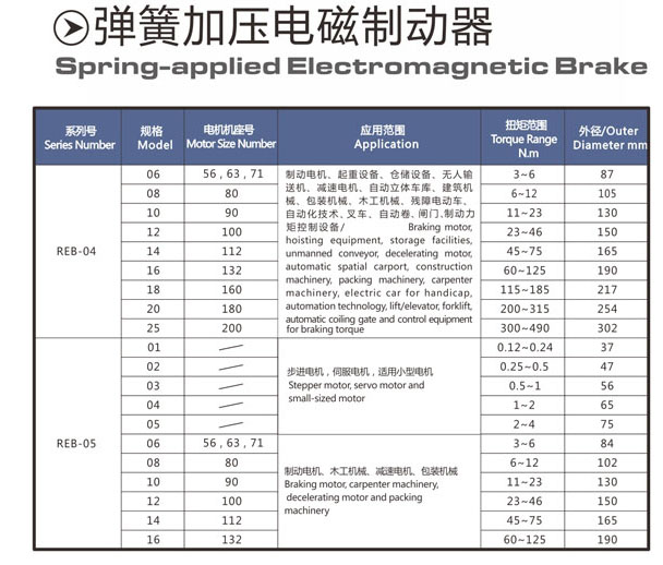 詳細(xì)信息 REB-04,REB-05,彈簧加壓電磁制動器