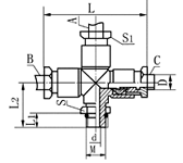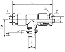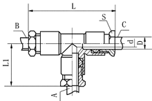Ⅱ 卡套式三通終端管接頭 公稱通徑?10mm 接口螺紋ZG3/8″。