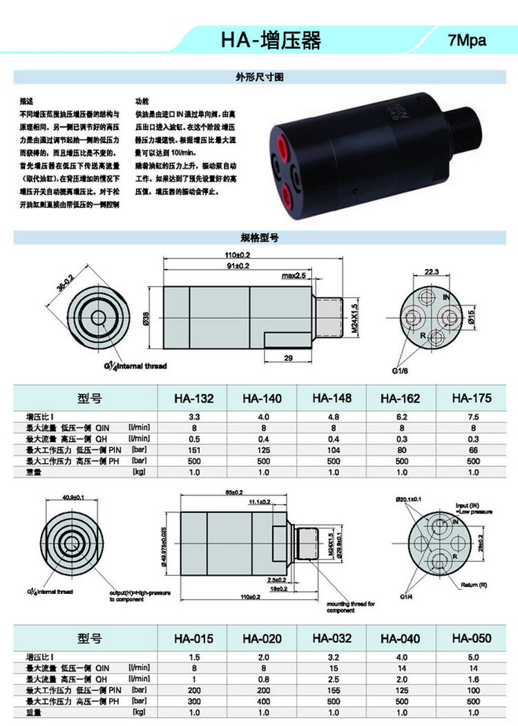 HA-132,HA-140,HA-148,HA-162,HA-175,HA-015,HA-020,HA-032,HA-040,HA-050,油壓增壓器