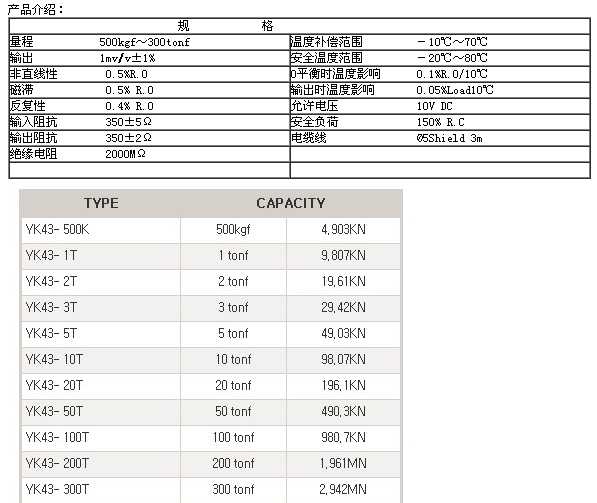詳細信息 YK43-500K,YK43-1T,YK43-2T,YK43-3T,YK43-5T,YK43-10T,YK43-20T,setech稱重傳感器