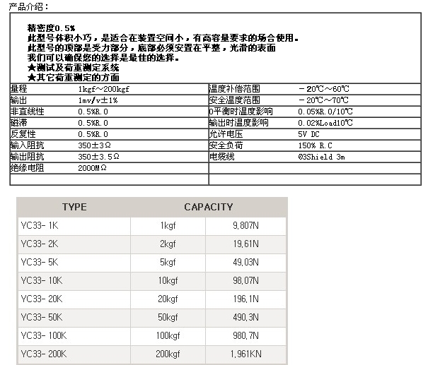 詳細信息 YC33-1K,YC33-2K,YC33-5K,YC33-10K,YC33-20K,YC33-50K,setech稱重傳感器