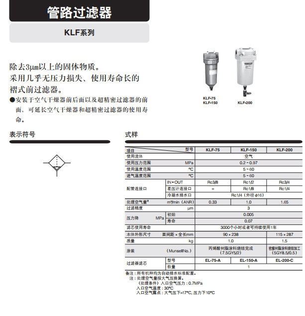 KLF-75,KLF-150,KLF-200,干線過(guò)濾器KLF系列