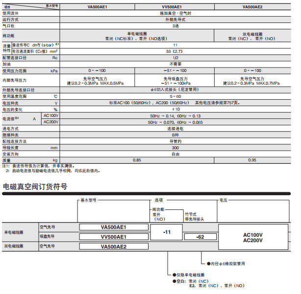 VA500AE,VA500AE-11,VA200AE2,VV500AE1,VV500AE1-11,真空用圓形電磁閥
