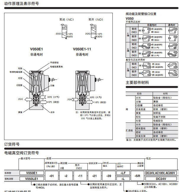 V050E1,V050E1-SR,V050E1-01,V050E1-01-SR,V050E1-01-2,真空電磁閥V050系列