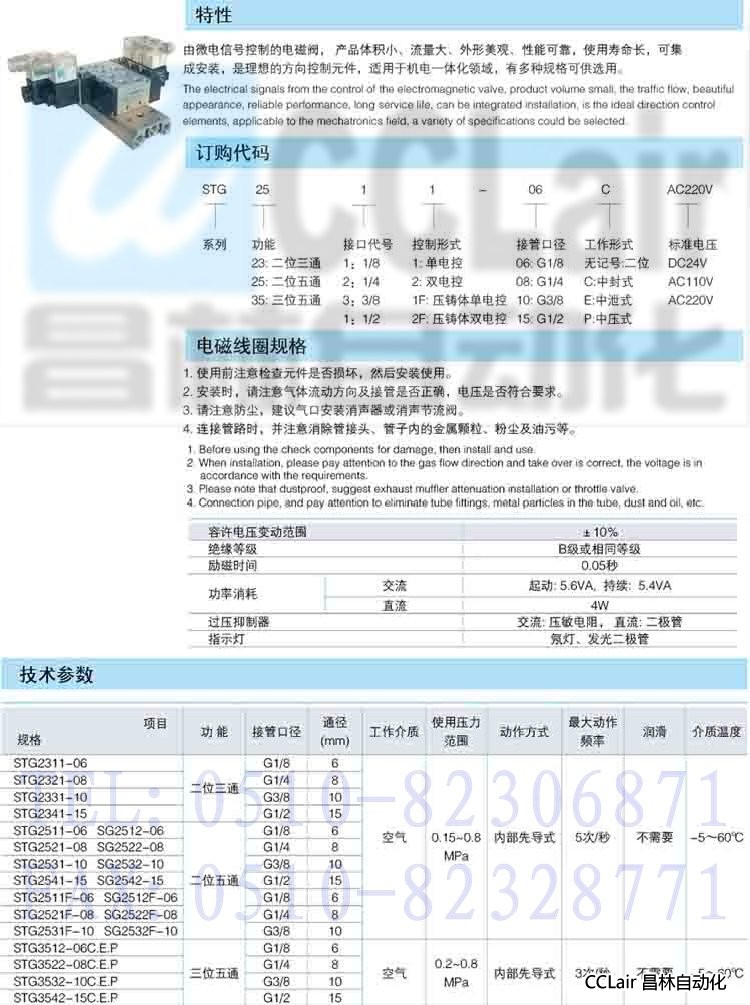 STG2311-06,STG2321-08,STG2331-10,STG2341-15,二位三通電磁閥