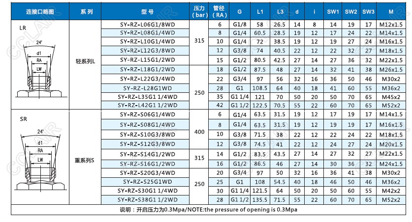 SY-RZ-L06G1/8WD,SY-RZ-L08G1/4WD,SY-RZ-L10G1/4WD,SY-RZ-L12G3/8WD |