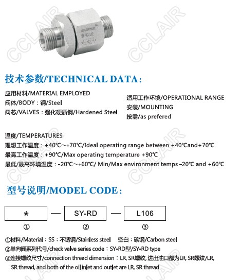 SY-RD-L06,SY-RD-L08,SY-RD-L10,SY-RD-L12,SY-RD-L15,SY-RD-L18,SY-RD-L22,SY-RD,單向閥