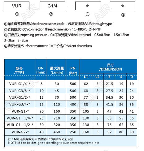 型號: VUR-G1/4-0,VUR-G1/4-0.5,VUR-G1/4-1.5,VUR-G1/4-3,VUR-G1/4-5,VUR-G3/8-0