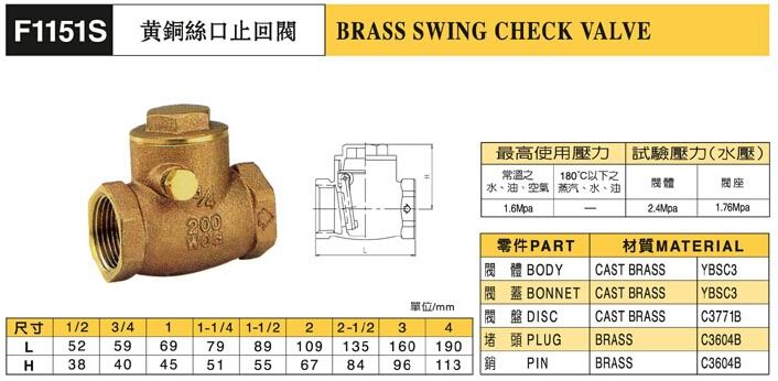 F1151S黃銅止回閥說明: