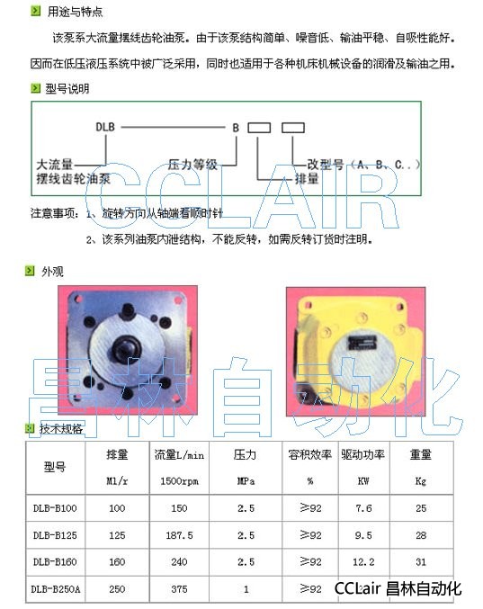 詳細(xì)信息 DLB-B100,DLB-B125,DLB-B160,DLB-B250A,大流量擺線齒輪油泵