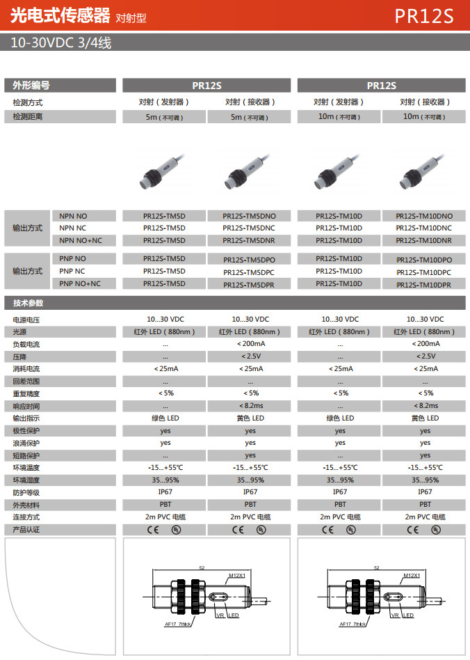 PR12S-TM5D,PR12S-TM5DNO,PR12S-TM5DNC,PR12S-TM5DNR,PR12S-TM10D,PR12S-TM10DNO,PR12S-TM10DNC,光電式傳感器