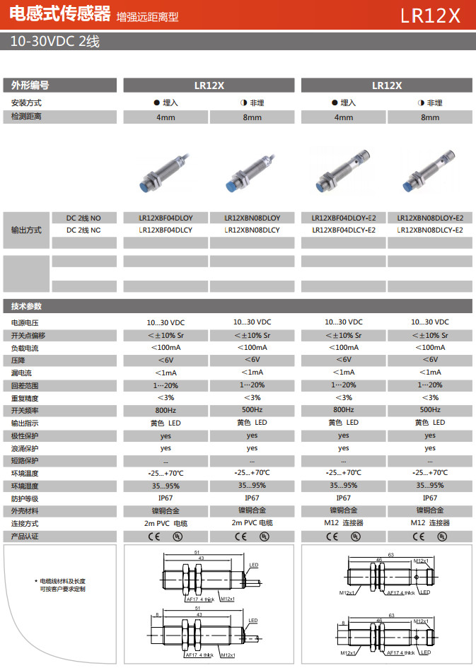 LR12XBF04DLOY,LR12XBF04DLCY,LR12XBN08DLOY,LR12XBN08DLCY,LR12XBF04DLOY-E2,電感式傳感器