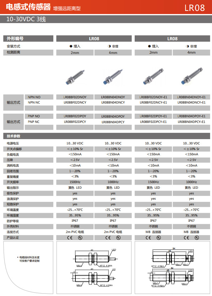詳細(xì)信息 LR08BF02DNOY,LR08BF02DNCY,LR08BN04DNOY,LR08BN04DNCY,LR08BF02DNOY-E1,LR08BF02DNCY-E1,電感式傳感器