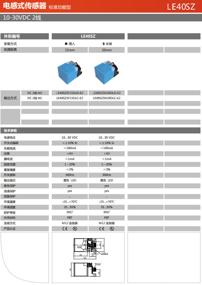 LE40SZSF15DLO-E2,LE40SZSF15DLC-E2,LE40SZSN20DLO-E2,LE40SZSN20DLC-E2,電感式傳感器