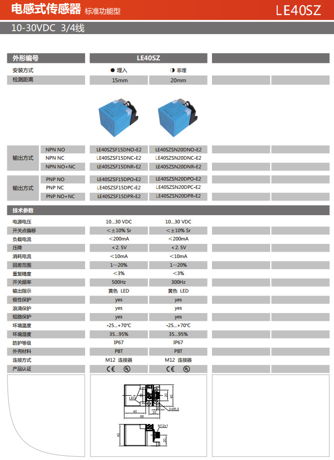 LE40SZSF15DNO-E2,LE40SZSF15DNC-E2,LE40SZSF15DNR-E2,LE40SZSN20DNO-E2,LE40SZSN20DNC-E2,電感式傳感器