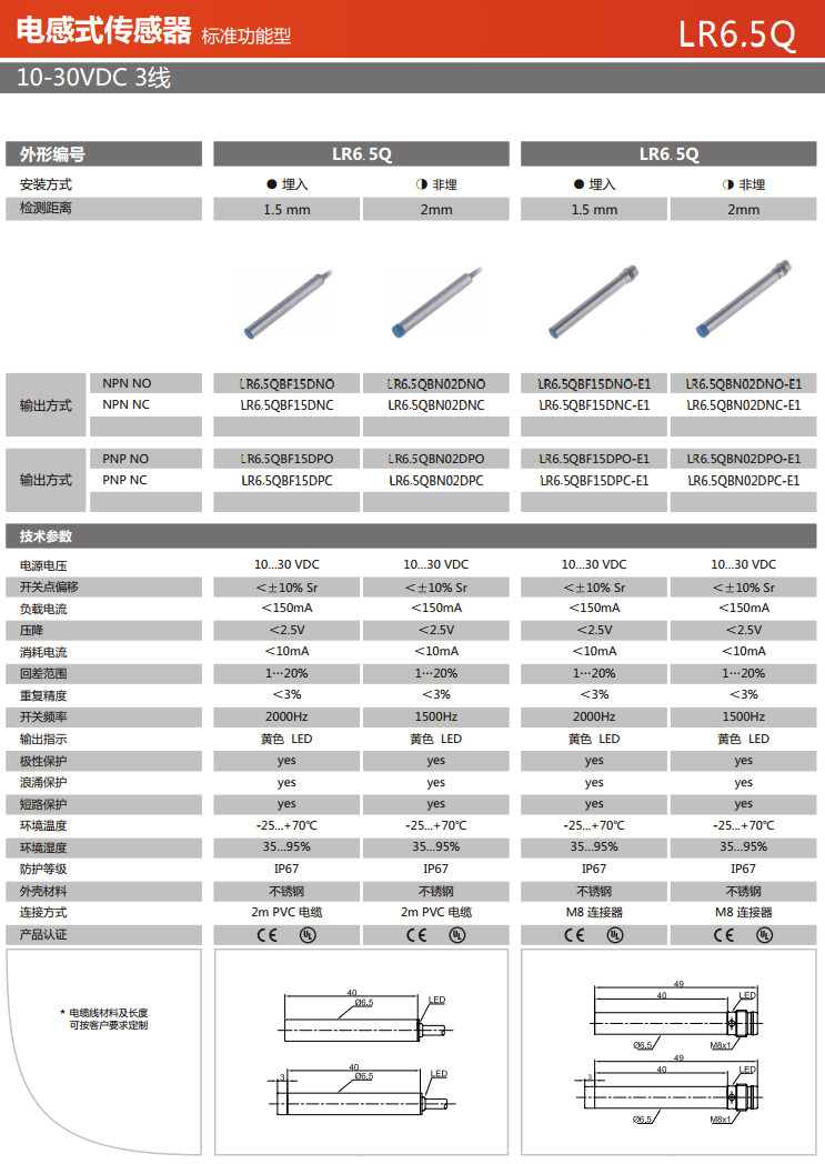 LR6.5QBF15DNO,LR6.5QBF15DNC,LR6.5QBN02DNO,LR6.5QBN02DNC,LR6.5QBF15DPO,電感式傳感器