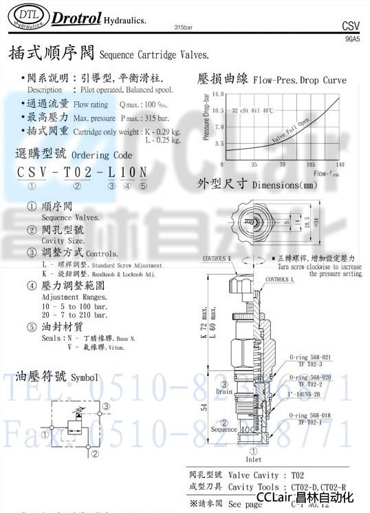 CSV-T02-L10N,CSV-T02-L10V,CSV-T02-L20N,磐龍插式順序閥,