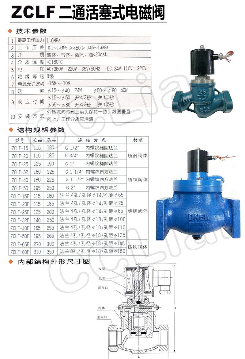 ZCLF-15,ZCLF-20,ZCLF-25,ZCLF-32,ZCLF-40,ZCLF-50,ZCLF-15F,ZCLF-20F,ZCLF-25F,ZCLF-32F,ZCLF-40F,ZCLF-50F,ZCLF-65F,ZCLF-80F,ZCLF二通活塞式電磁閥