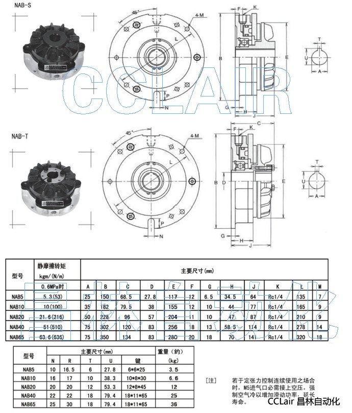 詳細(xì)信息 NAB5,NAB10,NAB20,NAB40,NAB65,(標(biāo)準(zhǔn)型)空壓通軸式離合器