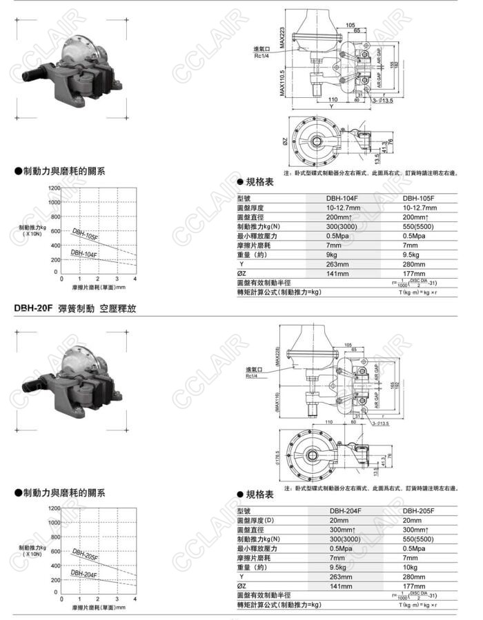 DBH-10F,DBH-104F,DBH-105F,DBH-20F,DBH-204F,DBH-205F,臥式安全碟式彈簧制動器