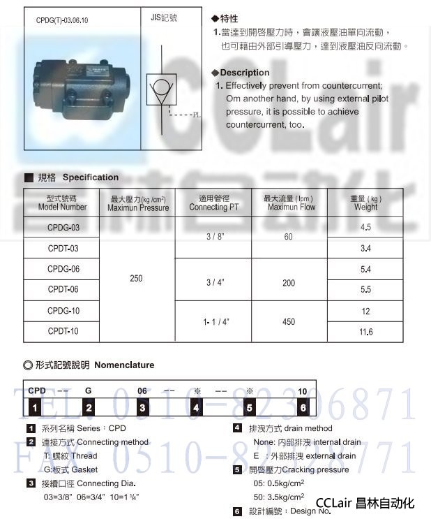 詳細信息 CPDG-03,CPDT-03,CPDG-06,CPDT-06,CPDG-10,CPDT-10,引導止逆閥