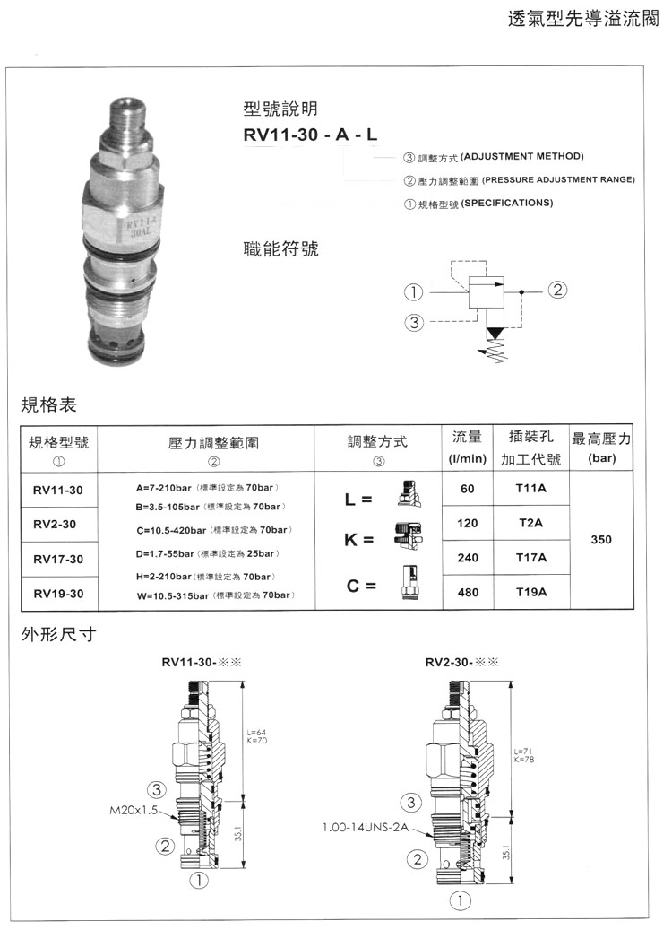 先導(dǎo)溢流閥 RV11-30,RV2-30,RV17-30,RV19-30,RV11-30-A-L,RV2-30-A-L,RV17-30-A-L,