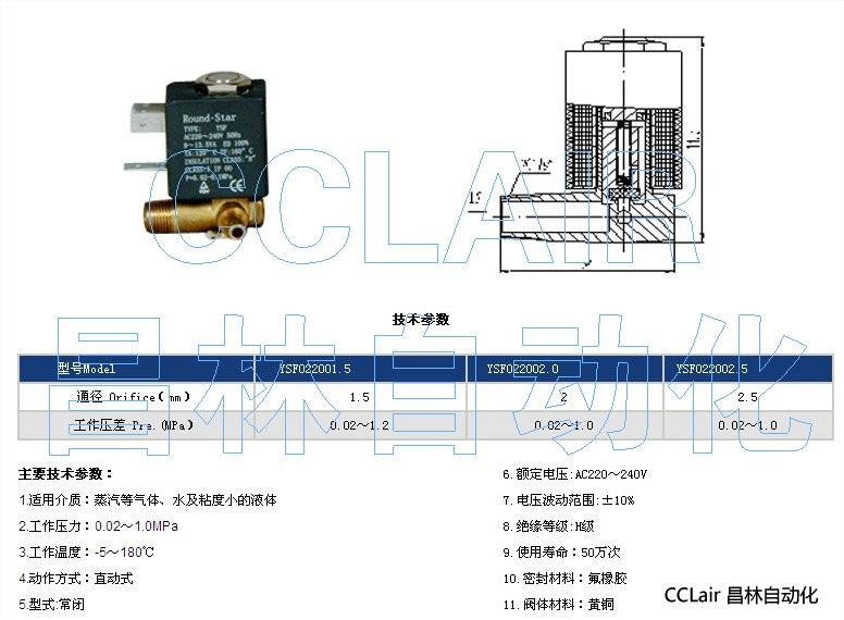 YSF022001.5,YSF022002.0,YSF022002.5,電熨斗專用電磁閥