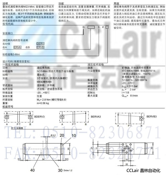 BDERV3,BERVA3,BERVB3,疊加式液控單向閥
