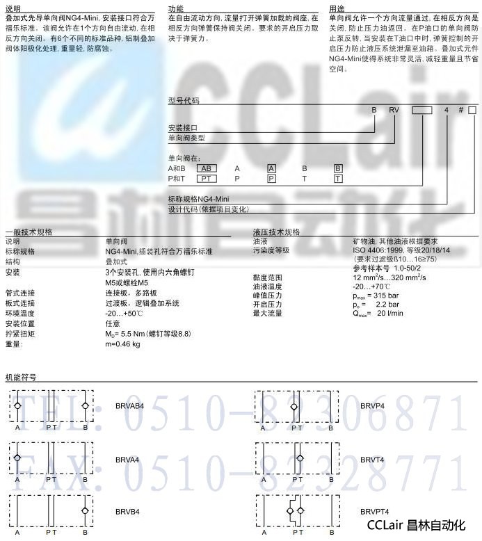 BRVA4,BRVB4,BRVAB4,BRVP4,BRVT4,BRVPT4,疊加式單向閥