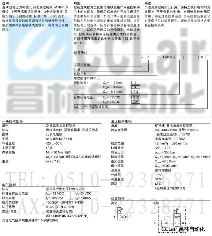 產(chǎn)品: 瀏覽次數(shù):768QZPPM18,插裝式比例 2-通流量控制閥