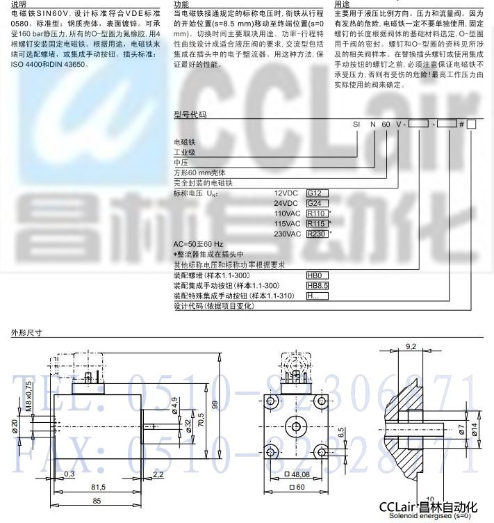 產(chǎn)品: 瀏覽次數(shù):1023SIN60V,中壓電磁鐵