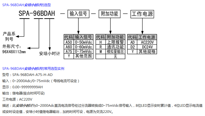 SPA-96BDAH-A50,SPA-96BDAH-A60,SPA-96BDAH-A75,SPA-96BDAH-Y,安培小時計