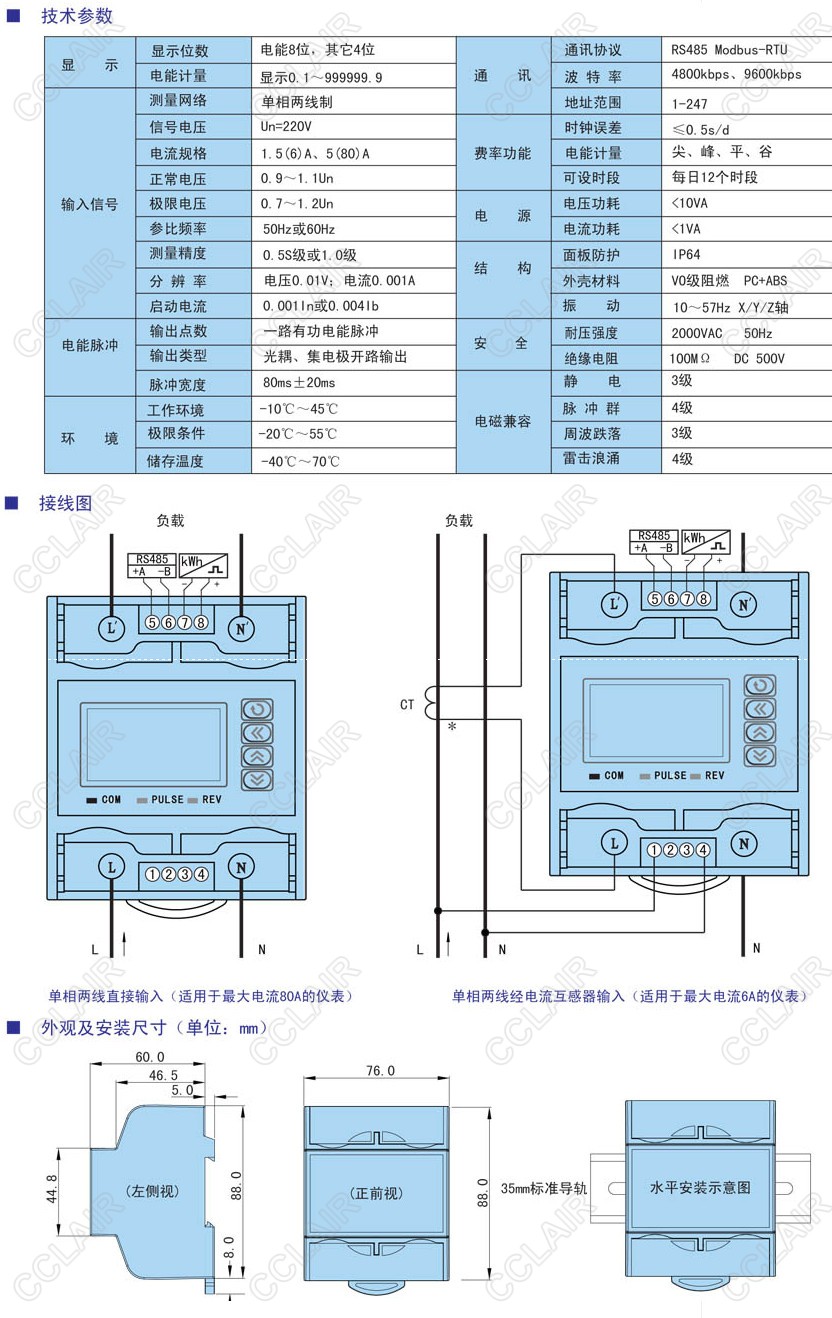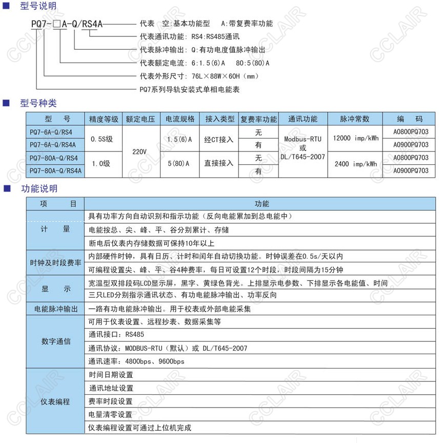 PQ7-6A-Q/RS4,PQ7-6A-Q/RS4A,PQ7-80A-Q/RS4,PQ7-80A-Q/RS4A,PQ7導(dǎo)軌安裝式單相電能表