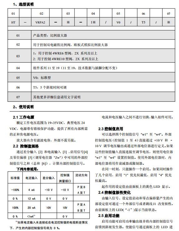 詳細信息 HT-VRPA2-1-11-V0-T5,HT-VRPA2-1-12-V0-T5,HT-VRPA2-1-13-V0-T5,HT-VRPA2-1-14-V0-T5比例放大器