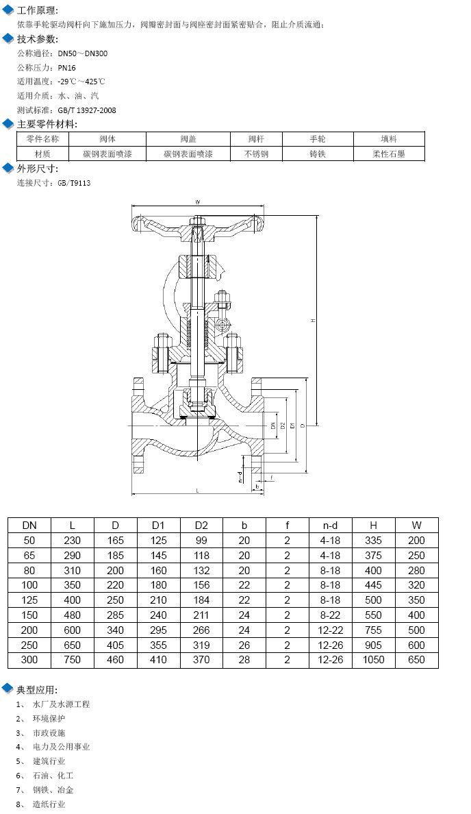 型號: W-J41H-16C-DN50,W-J41H-16C-DN65,W-J41H-16C-DN80,W-J41H-16C-DN100,W-J41H-16C-DN125,W-J41H-16C-DN150 W