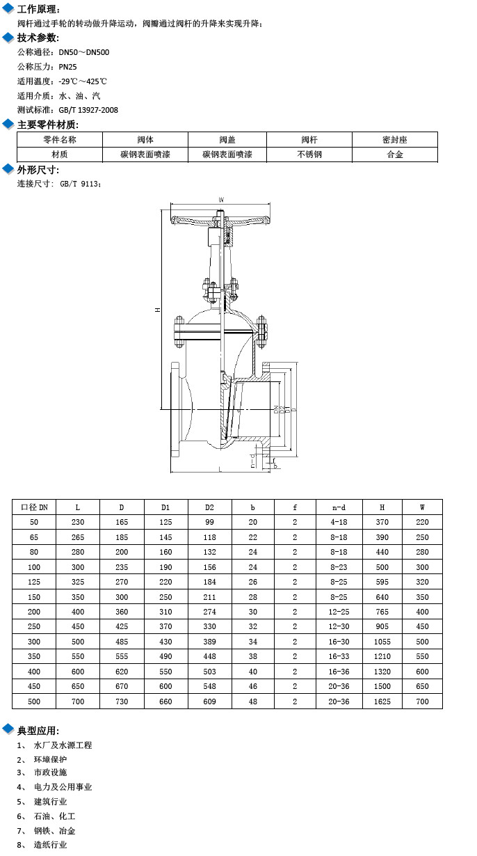 W-Z41H-25C-DN50,W-Z41H-25C-DN65,W-Z41H-25C-DN80,W-Z41H-25C-DN100,硬密封明桿閘閥