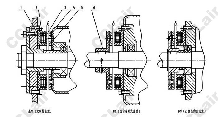 3、 制動(dòng)器主、從動(dòng)側(cè)需固定,不允許軸向竄動(dòng),同時(shí)保證工作氣隙“δ”。