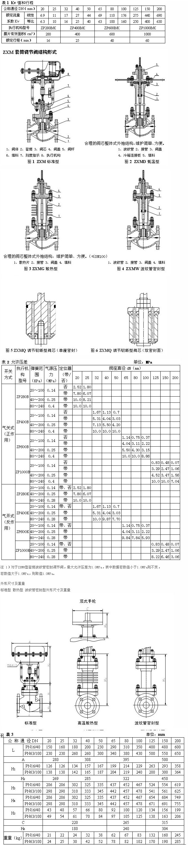 ZXM型系列氣動薄膜帶波紋管套筒調(diào)節(jié)閥采用頂導(dǎo)向結(jié)構(gòu),配用多彈簧執(zhí)行機(jī)構(gòu)。具有結(jié)構(gòu)緊湊、重量輕、動作靈敏、流體通道呈S流線型、壓降損失小、閥容量大、流量特性精確、拆裝方便等優(yōu)點(diǎn)。