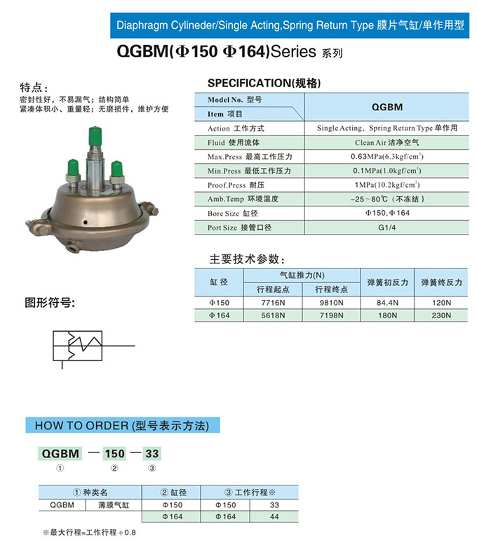 詳細(xì)信息 QGBM-150-33,QGBM-164-44,QGBM-150-44,QGBM-164-33,膜片氣缸