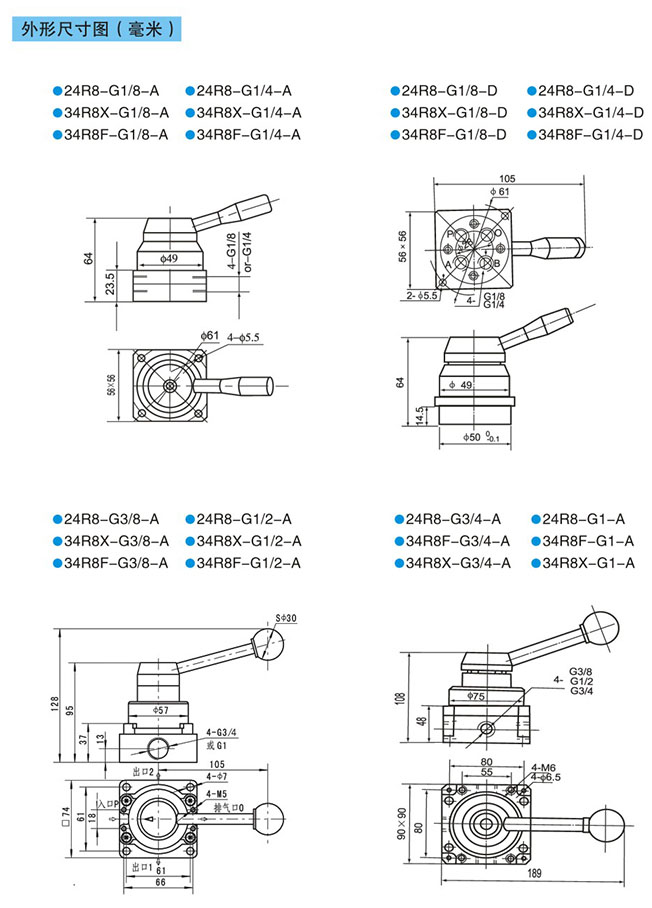 詳細(xì)信息 24R8-G1/8,24R8-G1/4,24R8-G3/8,24R8-G1/2,24R8-G3/4,24R8-G1,24R8-G1/8-A,4通手動換向閥
