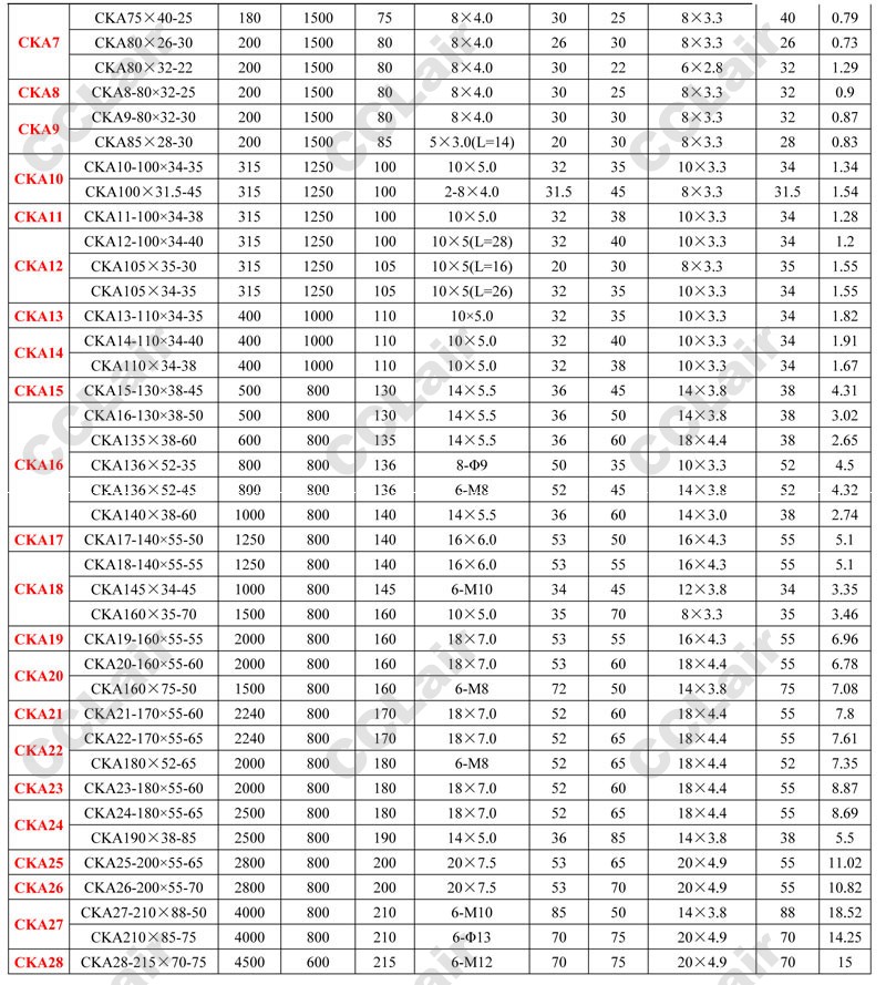 CKA27-210×88-50,CKA210×85-75,CKA28-215×70-75,CKA135×38-60,CKA105×34-35,