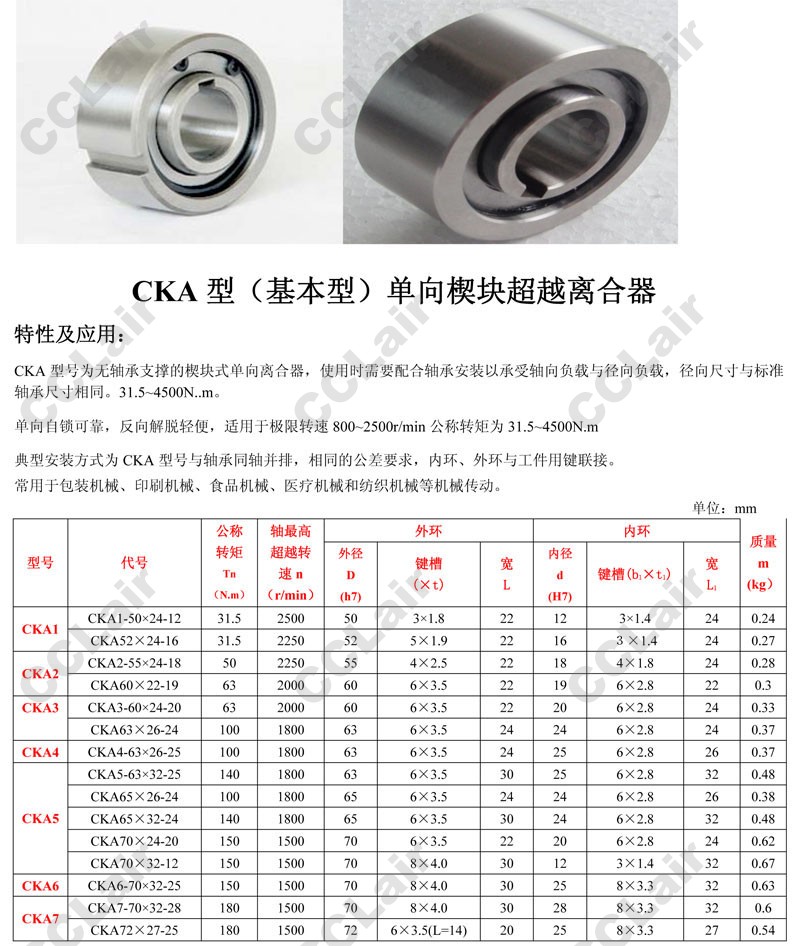 CKA1,CKA2,CKA3,CKA4,CKA5,CKA6,CKA7,CKA8,CKA9,CKA13,CKA28,CKA160×35-70,單向楔快離合器